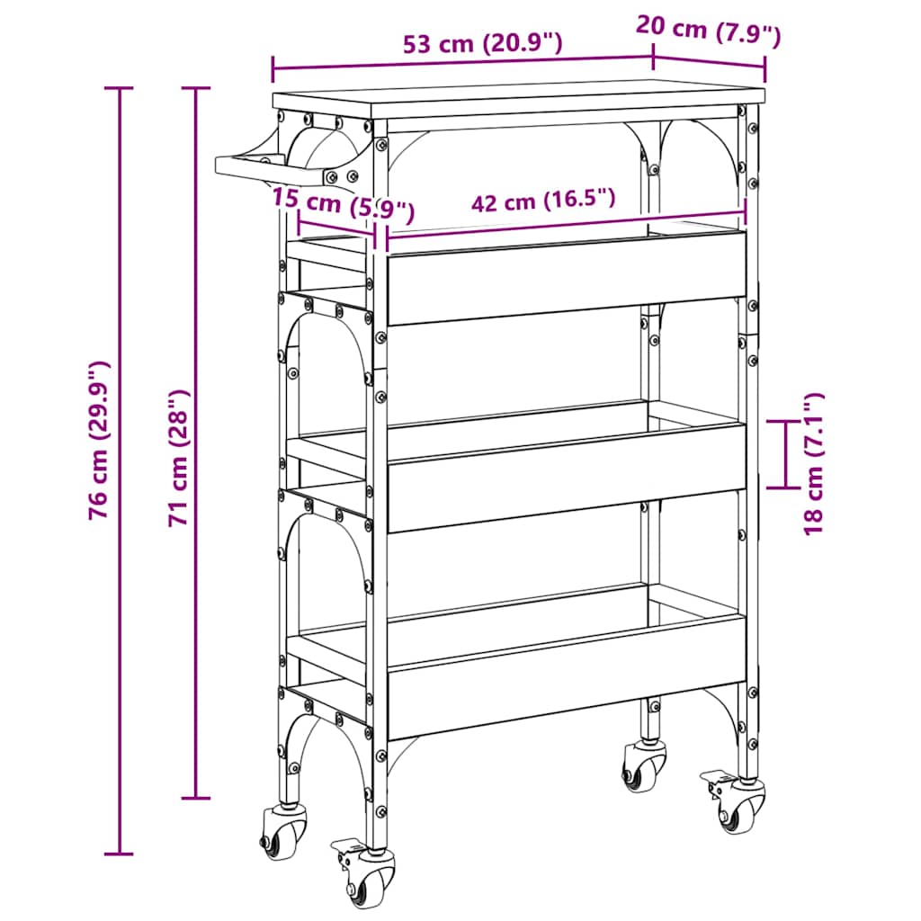 Kuhinjski kolica Staro drvo 53 x 20 x 76 cm Konstruirano drvo