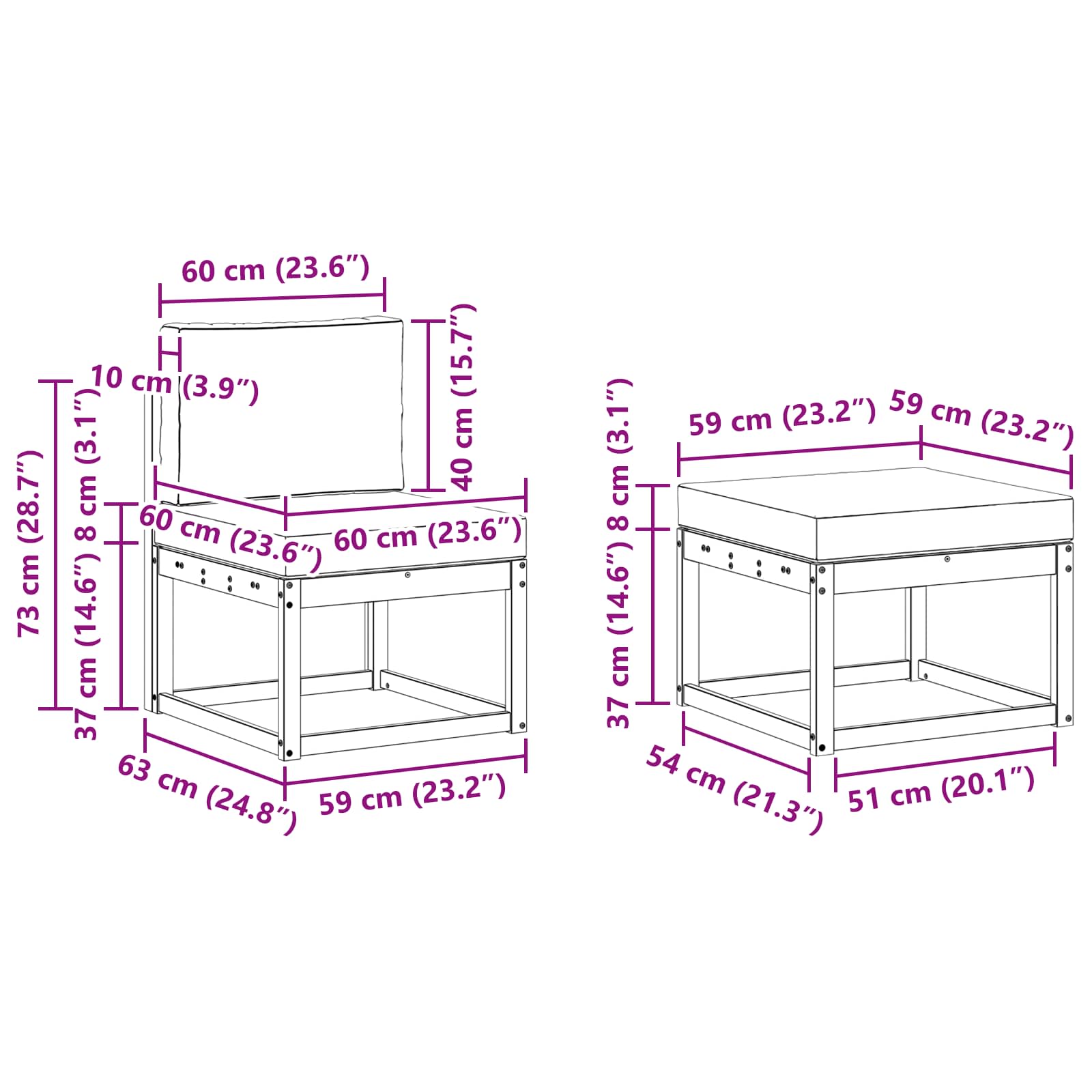 - 3 x Srednji kauč: 59 x 63 x 73 cm (D x Š x V)