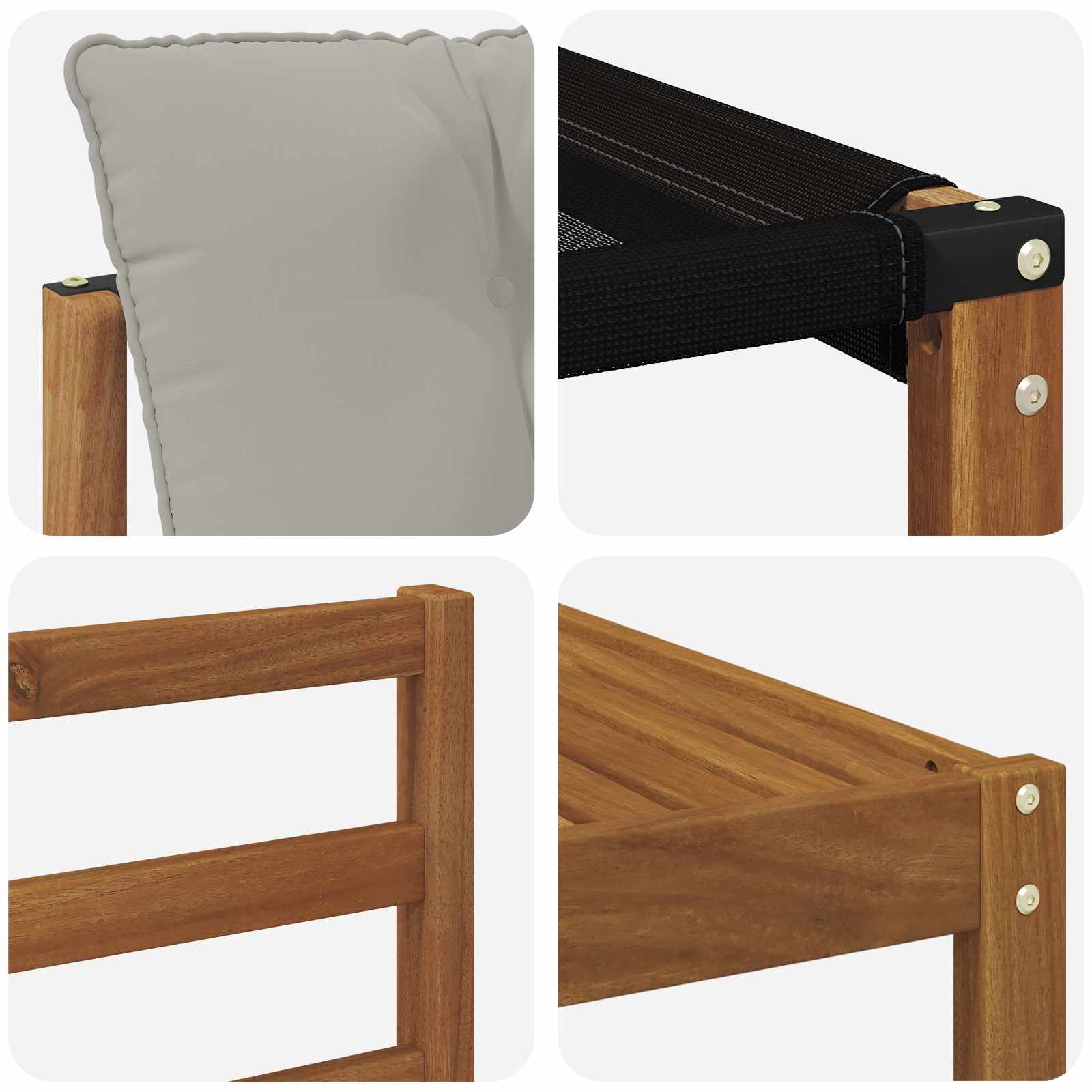 Ova vanjska garnitura namještaja kombinira stil i funkcionalnost i stvara sjajan fokus u svakom vrtu ili na terasi. Uz svoj moderni dizajn, čistih linija i jednostavnih detalja, donosi dašak elegancije i podržava opuštanje na otvorenom te društvena okupljanja. Cijela garnitura je od masivnog bagremovog drva, što osigurava izdržljivost i dugotrajnu atraktivnost, čineći je savršenim izborom za one koji žele kombinirati praktičnost i sofisticirani izgled u svom vanjskom namještaju.