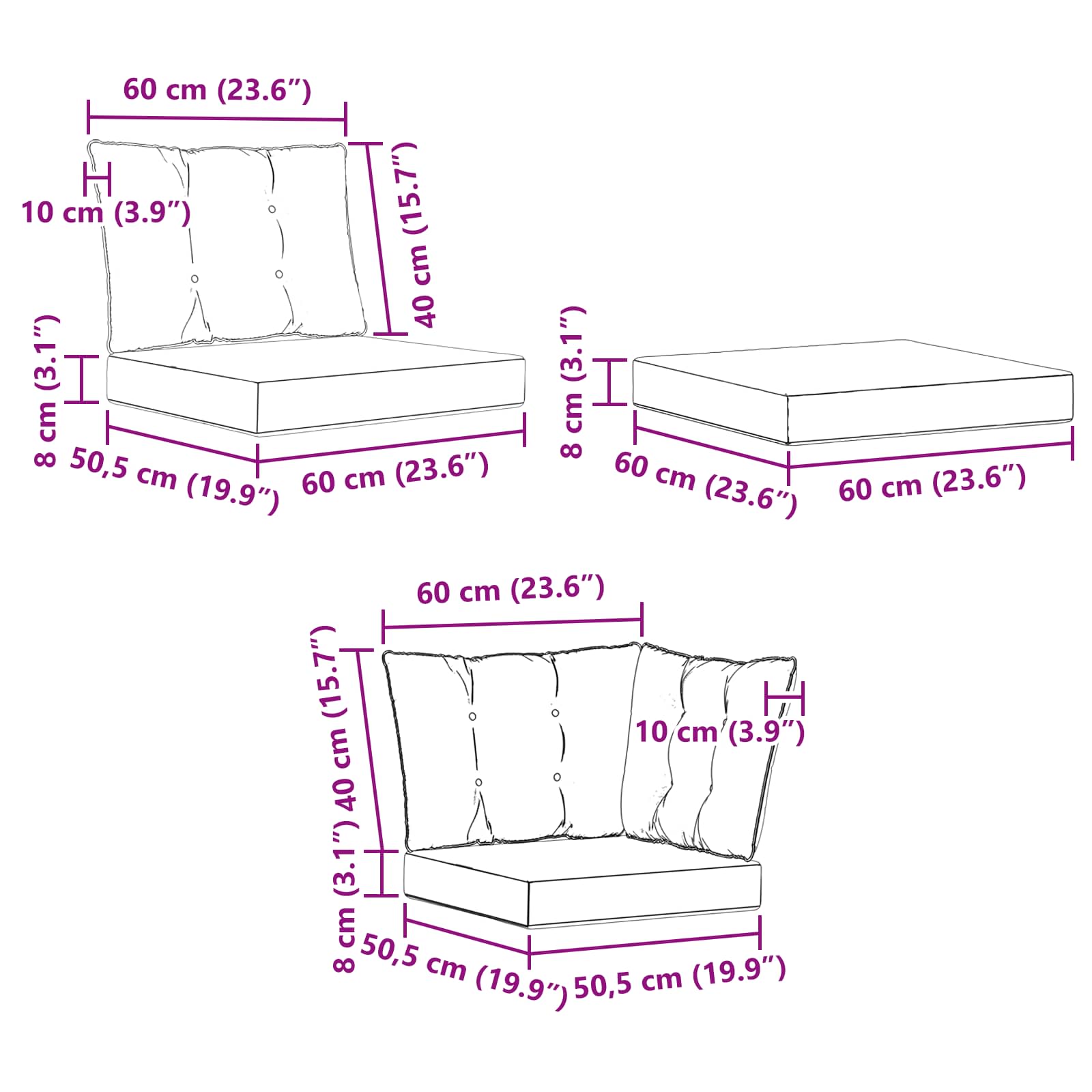 - 5 x Jastučić za sjedenje: 60 x 50,5 x 8 cm (DŠV)