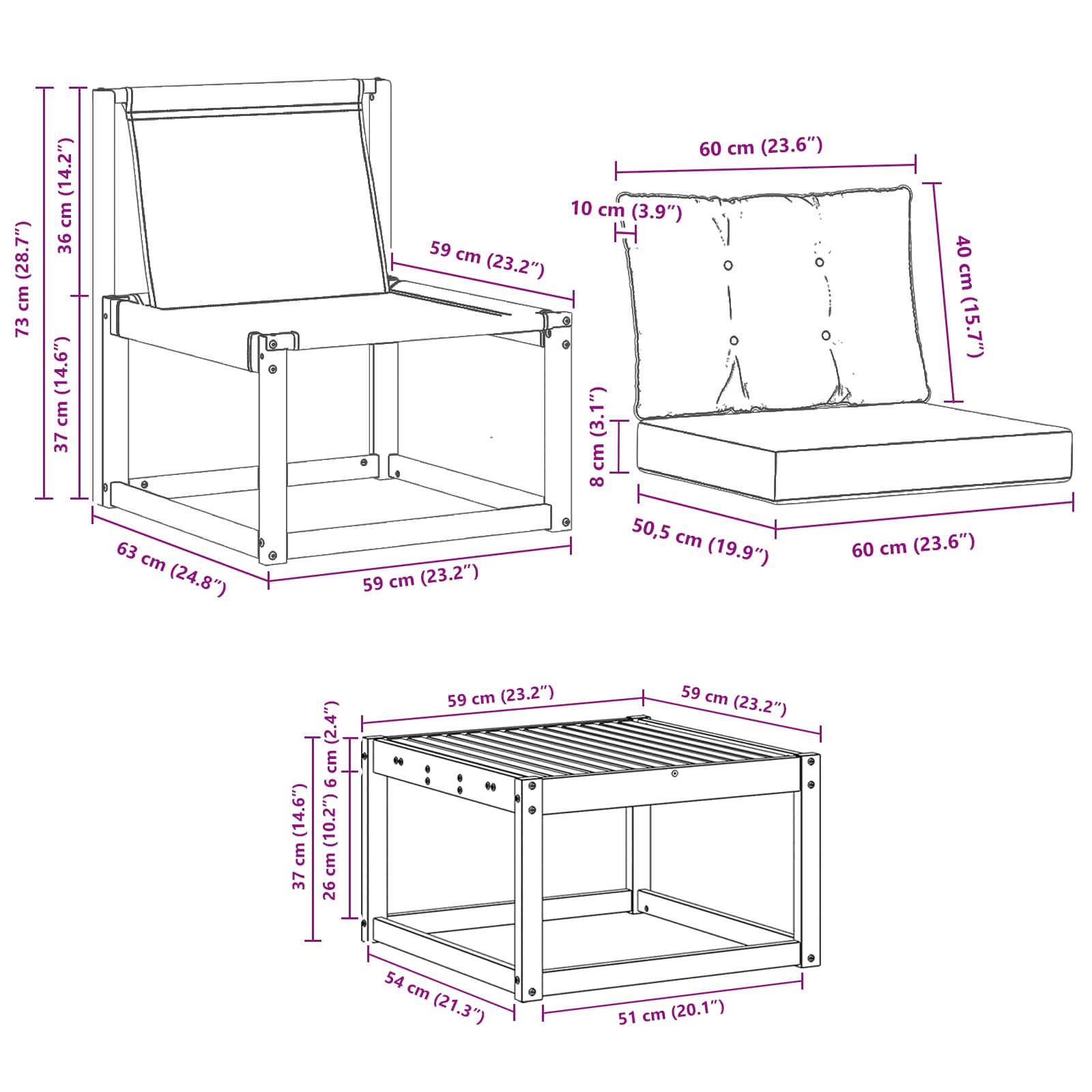 - 4 x Naslon: 59 x 4 x 73 cm (LxWxH)